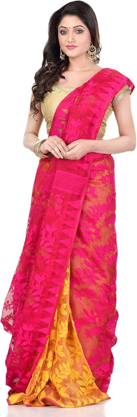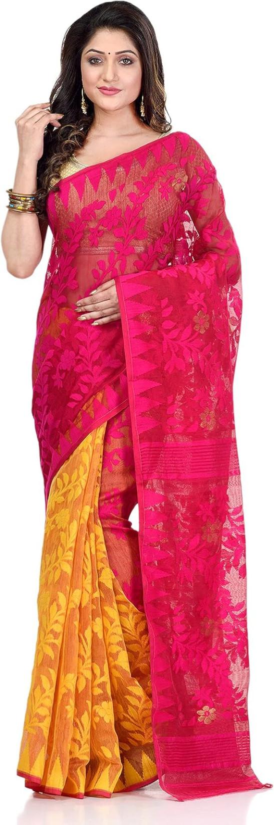 Women`s Bengal Handloom Tant Soft Dhakai Jamdani Cotton Saree Whole Body Design Without Blouse Piece 5.5 Mtr