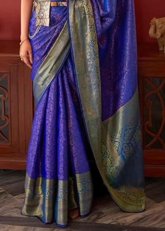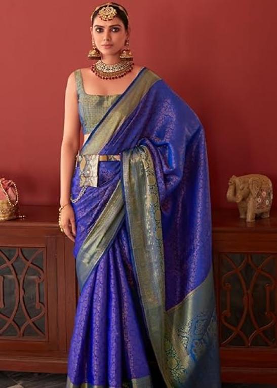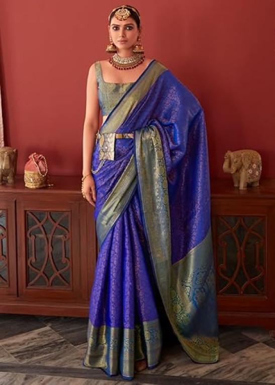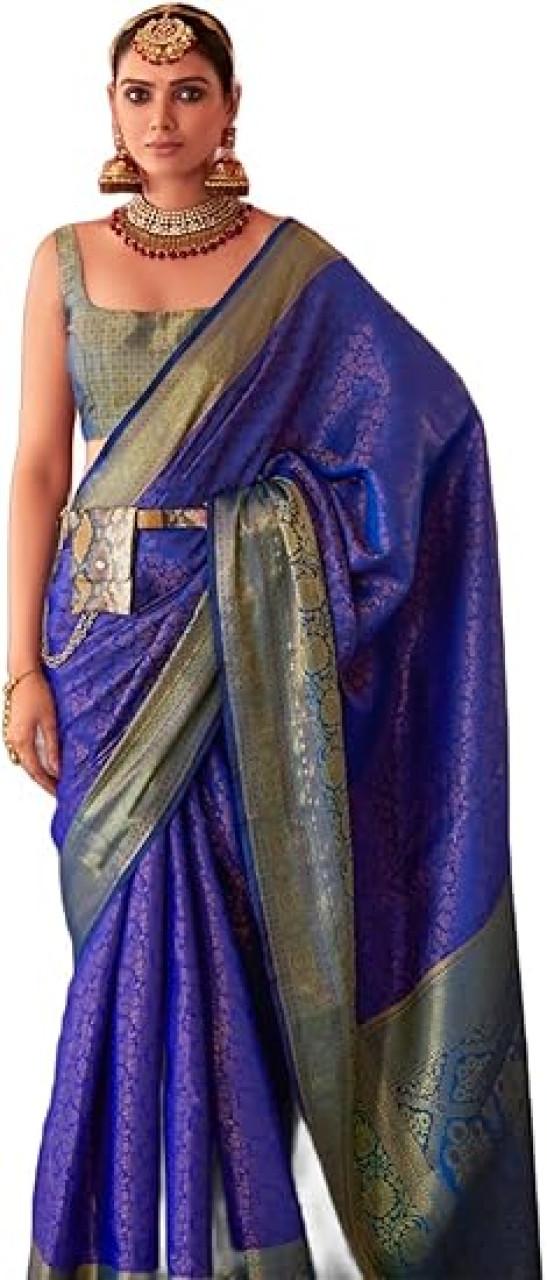 Women's kanjivaram banarasi silk saree Zari Woven festival Wedding silk sarees for women with Unstitched blouse piece