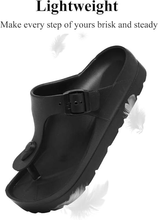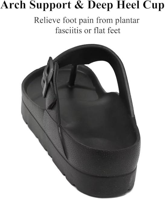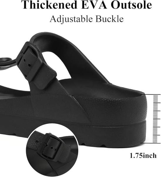Womens Platform Sandals with Arch Support, Adjustable Buckle Beach Sandal Woman Comfort Lightweight Ultra Cushion EVA Slides