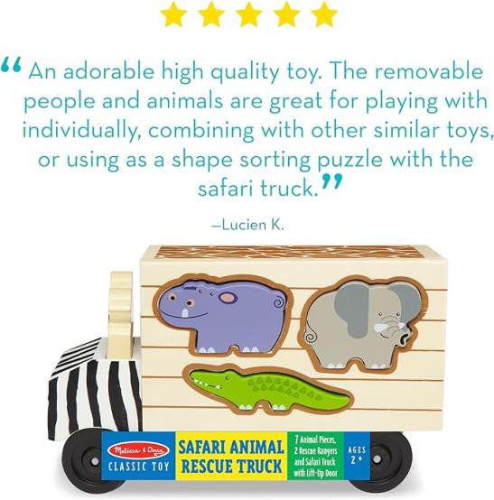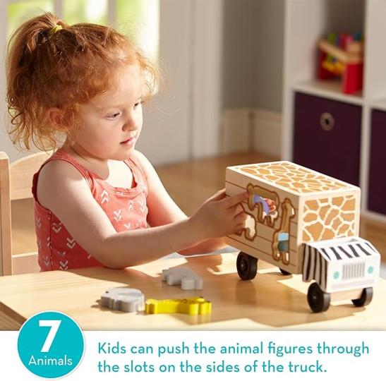 Wooden Shape Sorter Rescue Truck with Zoo & Safari Animals Toys for Kids, Montessori Toddler Wooden Animal Toys for 2+ Year Olds