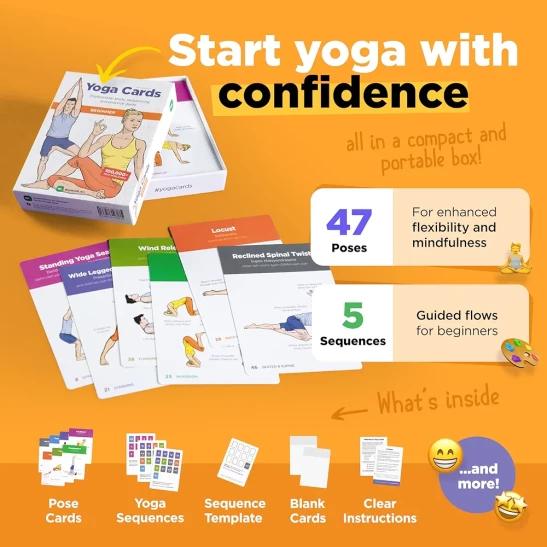 WorkoutLabs YOGA CARDS - Beginners: Professional Visual Study, Class Sequencing & Practice Guide with Essential Poses, Breathing Exercises & Meditation - Yoga Flash Cards/Yoga Deck with Sanskrit