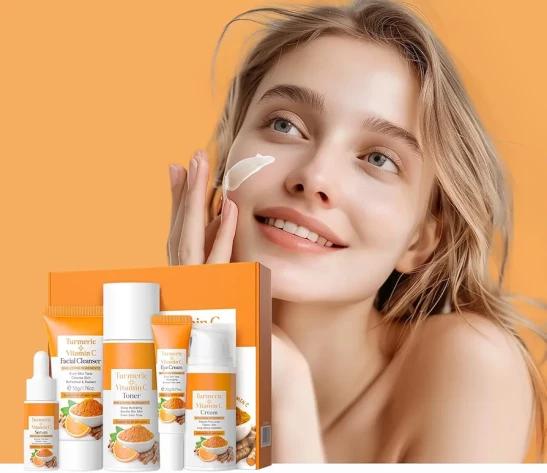 Xmas Gifts for Women Turmeric Skincare Set, Vitamin C Skin Care Set with Face Cleanser, Toner, Serum, Eye Cream, Moisturiser, Even Skin Tone, Anti Aging Skin Care Gift Kit for Teenage Girls 5 pcs