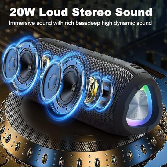 Ykall Bluetooth Speaker 20W, Portable Bluetooth Speaker Wireless with FM Radio, HD Stereo 36-Hours Playtime, IPX6 Waterproof, Wireless Stereo Pairing, With RGB Lights for Outdoor, Travel, Home