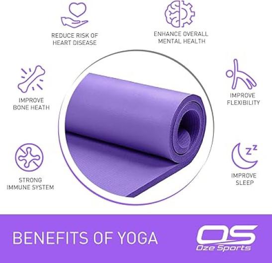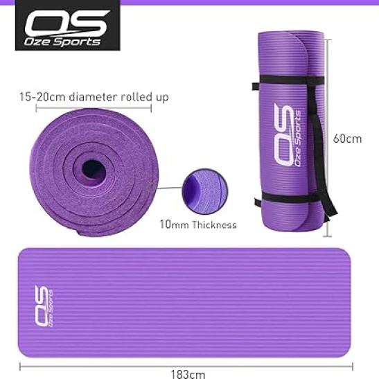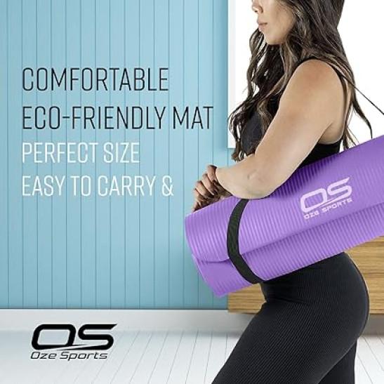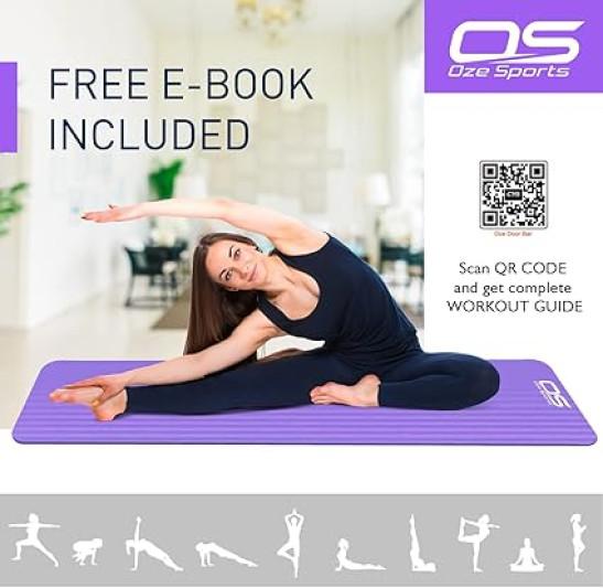 Yoga Mat Exercise NBR Fitness foam mat Extra Thick Non-Slip Large Padded High Density ideal for HiiT Pilates gymnastics mats Fitness & Workout with Free Carry Strap