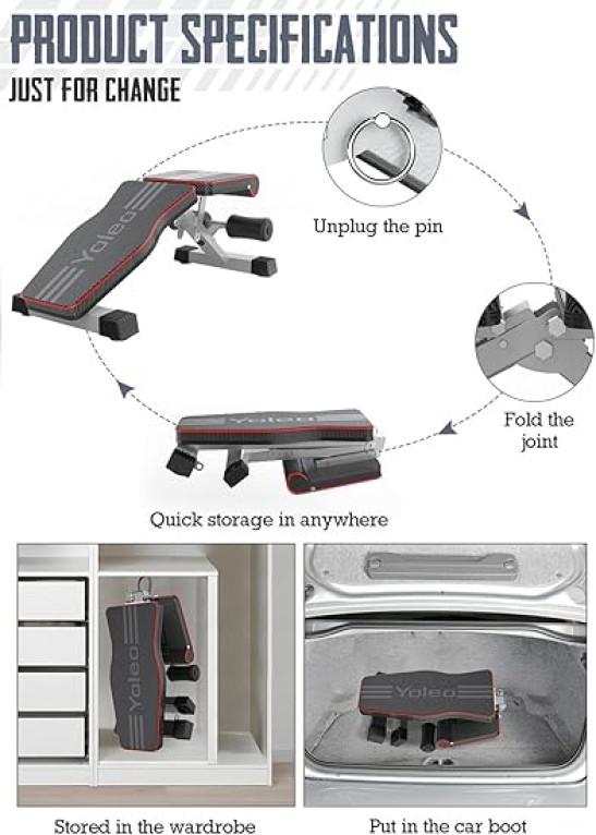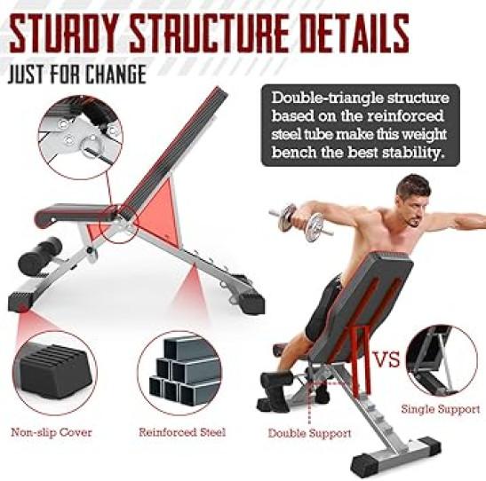 YOLEO Weight Bench, 660LB/300KG Adjustable Foldable Strength Training Bench