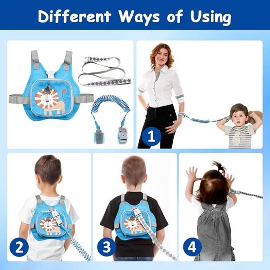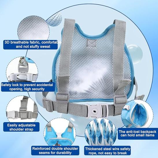 YTACREA Children's Safety Lead, 4-in-1 Children's Leash Backpack, Children's Safety Leash Backpack with Anti-Lost Belt, Wrist Link, Children's Lead Harness, Toddler Backpack 1 2 3 4 5 Years