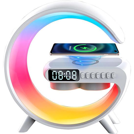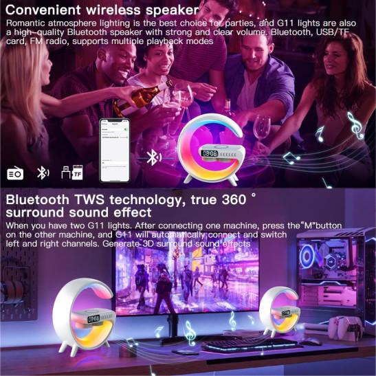 YumCute Home Atmosphere Table Lamps with Wireless Charger Bluetooth Speaker G11 Ambient Light – 15W LED Bedside lamp with Time Display White Color