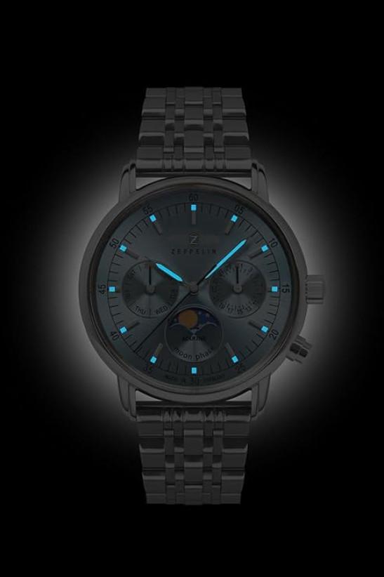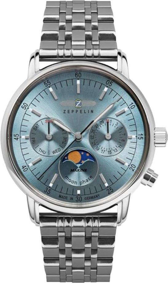 Zeppelin Women's Watch LZ 14 Marine Moon Phase Steel/Ice Blue 8637M-3, silver, Classic